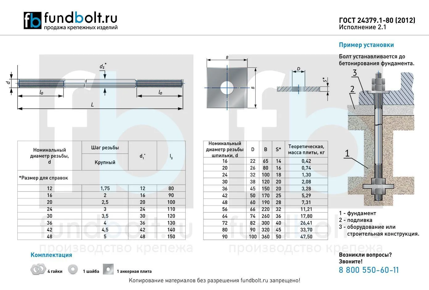 Производим фундаментные болты тип 2 исполнение 1 в строгом соответствии с ГОСТ 24379.1-80(2012). Конструкция болта включает анкерную плиту квадратной формы, что обеспечивает максимальную устойчивость к нагрузкам на сдвиг и выдергивание. Для строительных и монтажных организаций предлагаем особые условия поставки.