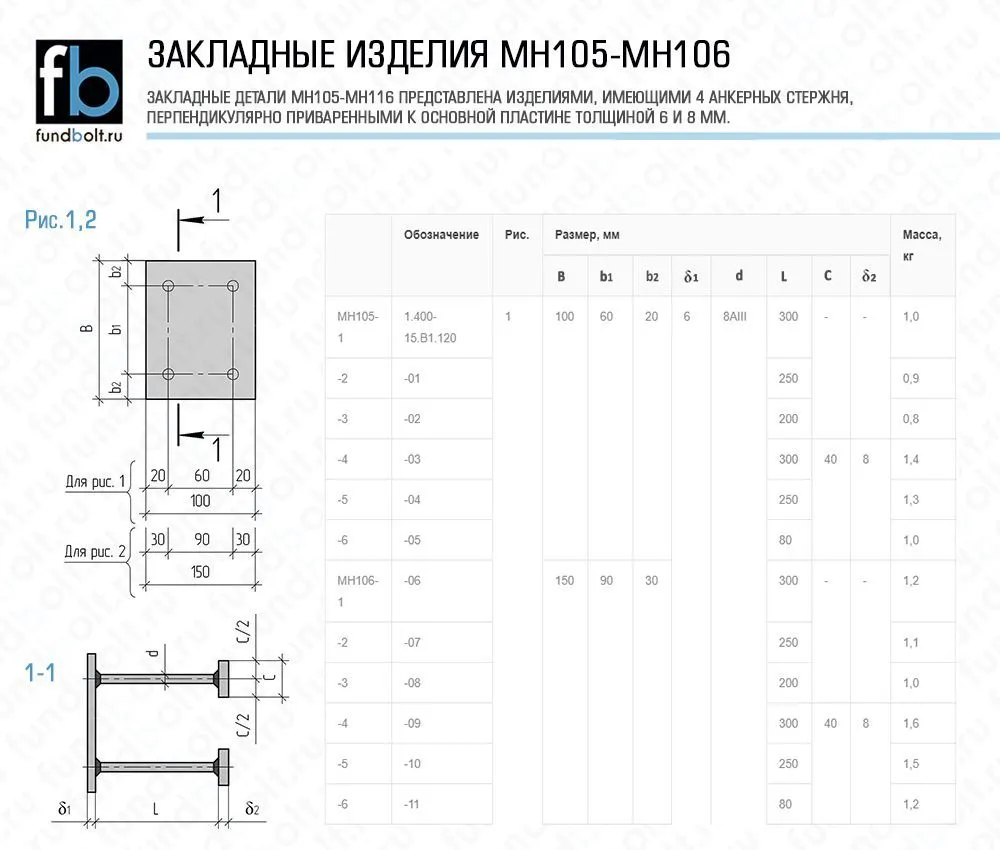 У нас можно заказать и купить Закладное изделие МН 105-2 Серия 1.400-15 выпуск 1 с доставкой. Цена формируется индивидуально — с учётом металлоёмкости, объёмов и сроков.