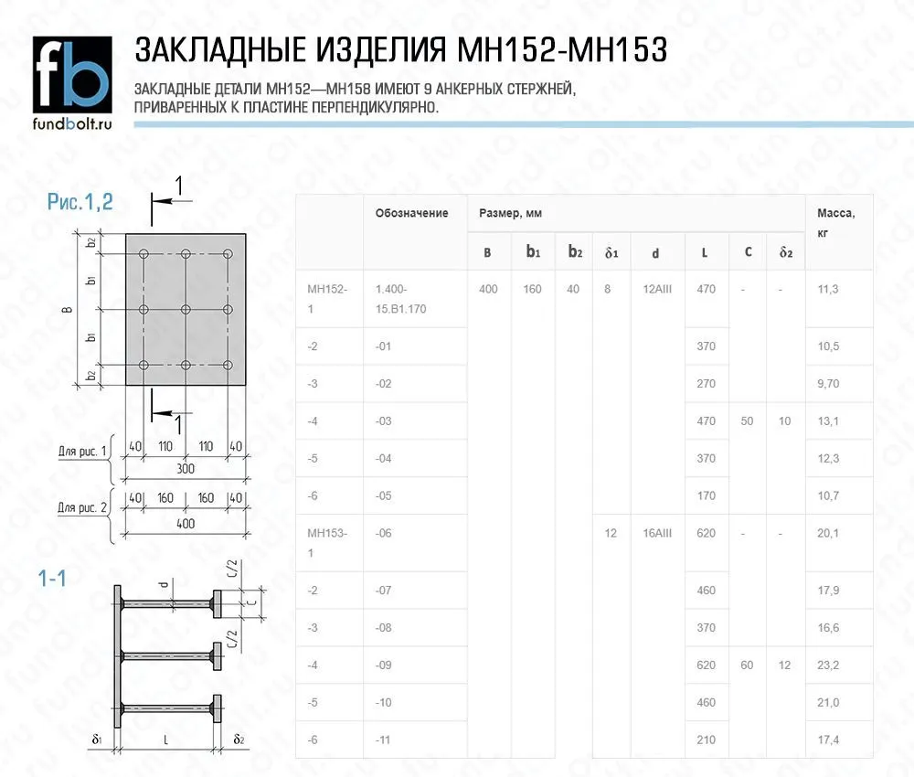 Купить Закладное изделие МН 152-1 Серия 1.400-15 выпуск 1 в нашей компании выгодно: