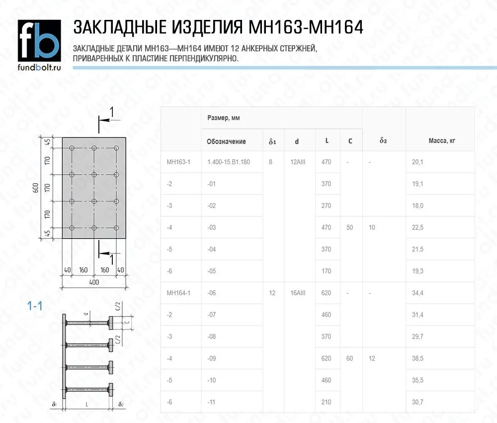 У нас можно заказать и купить Закладное изделие МН 164-1 Серия 1.400-15 выпуск 1 с доставкой. Цена формируется индивидуально — с учётом металлоёмкости, объёмов и сроков.