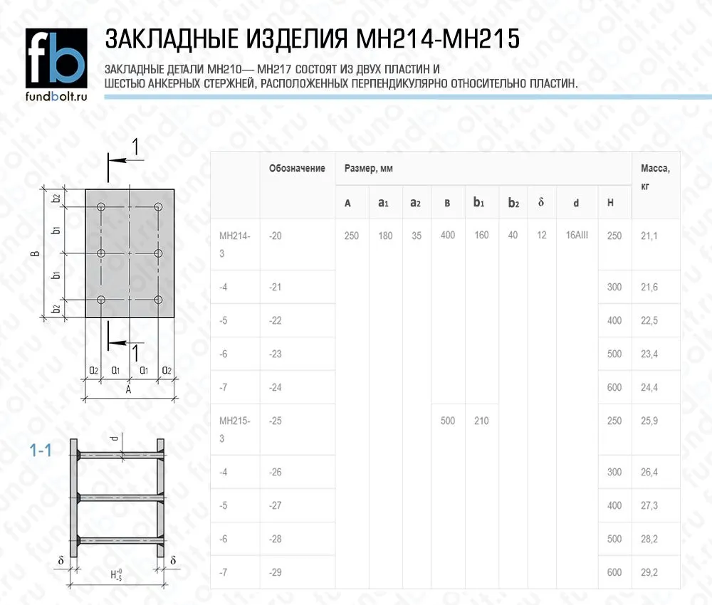 У нас можно заказать и купить Закладное изделие МН 215-5 Серия 1.400-15 выпуск 1 с доставкой. Цена формируется индивидуально — с учётом металлоёмкости, объёмов и сроков.