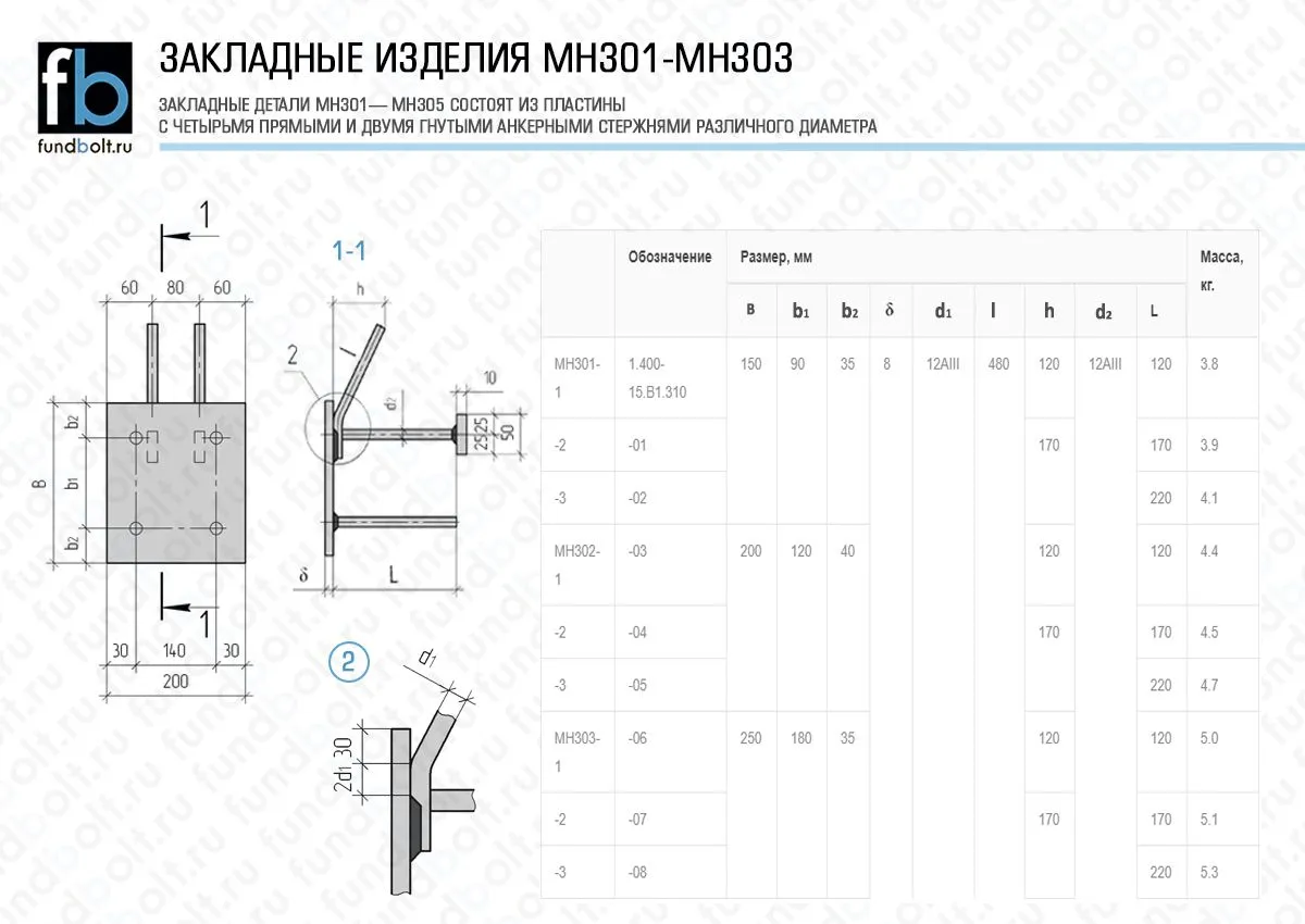Купить Закладное изделие МН 302-1 Серия 1.400-15 выпуск 1 в нашей компании выгодно: