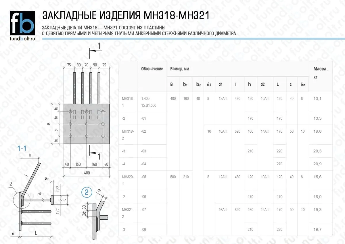 У нас можно заказать и купить Закладное изделие МН 319-2 Серия 1.400-15 выпуск 1 с доставкой. Цена формируется индивидуально — с учётом металлоёмкости, объёмов и сроков.