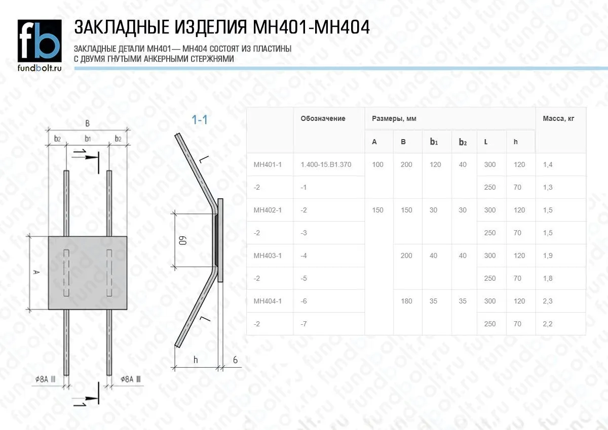 Закладное изделие МН 404-1 Серия 1.400-15 выпуск 1