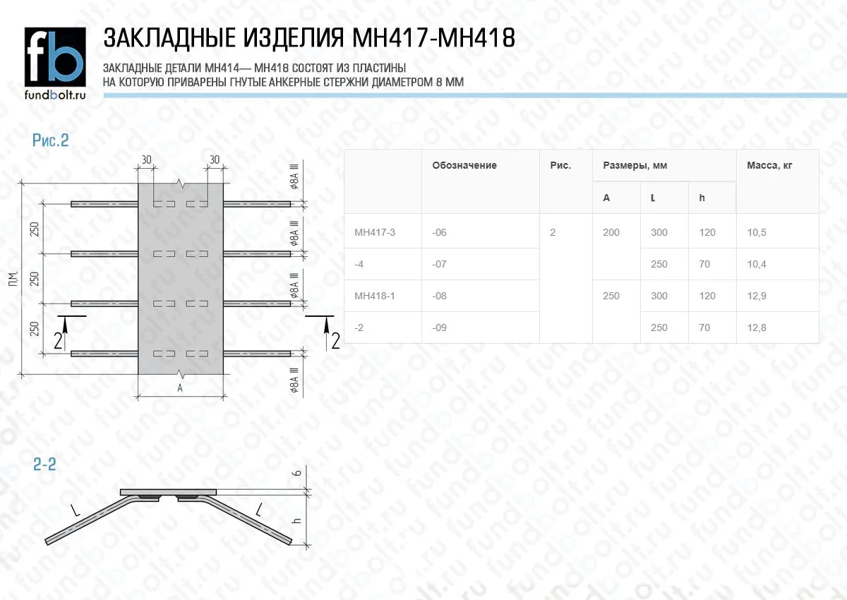 Закладное изделие МН 417-1 Серия 1.400-15 выпуск 1, Длина 2580