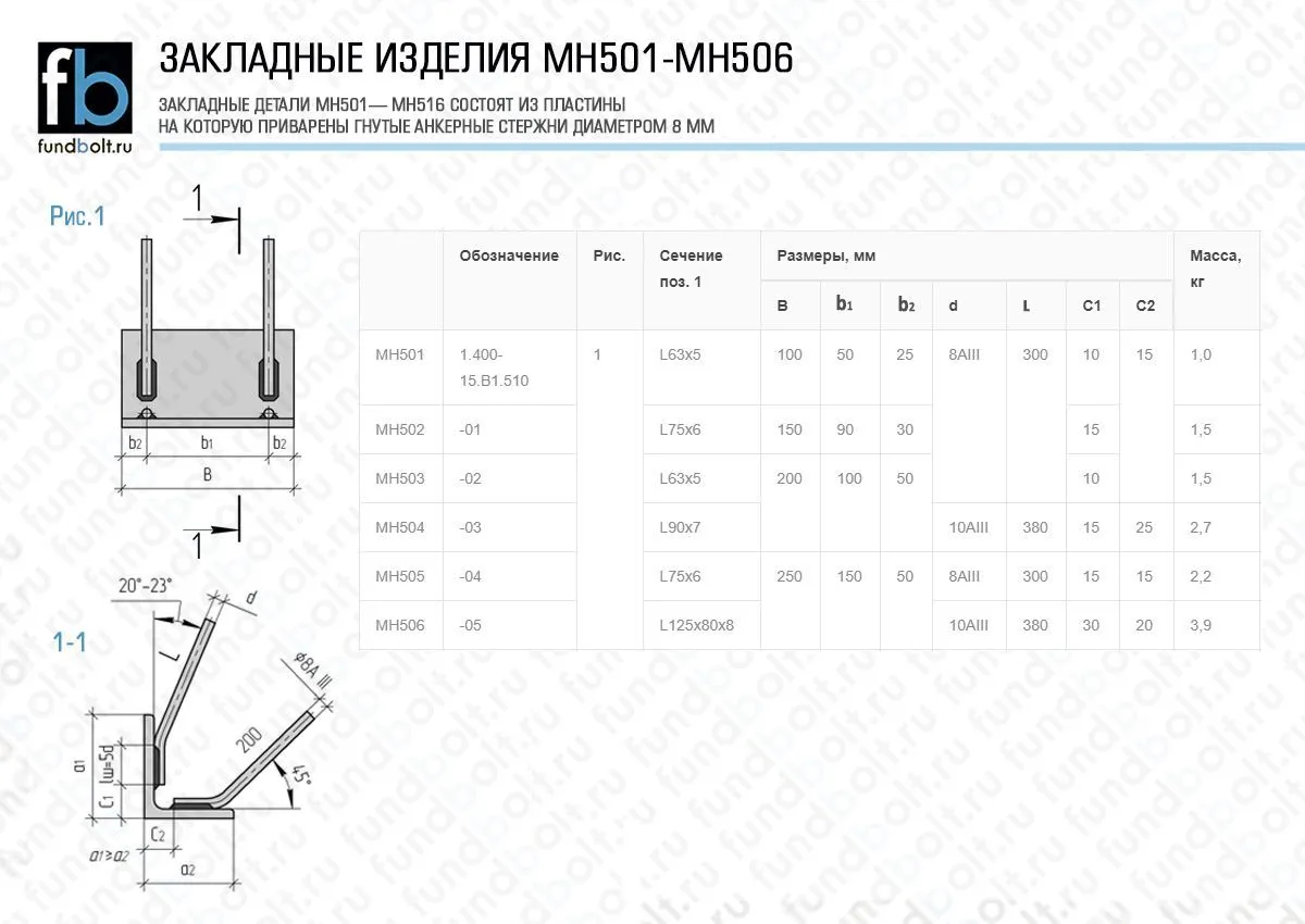 Купить Закладное изделие МН 501 Серия 1.400-15 выпуск 1 в нашей компании выгодно:
