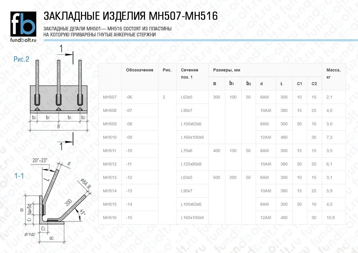 Закладное изделие МН 509 Серия 1.400-15 выпуск 1, Длина 575