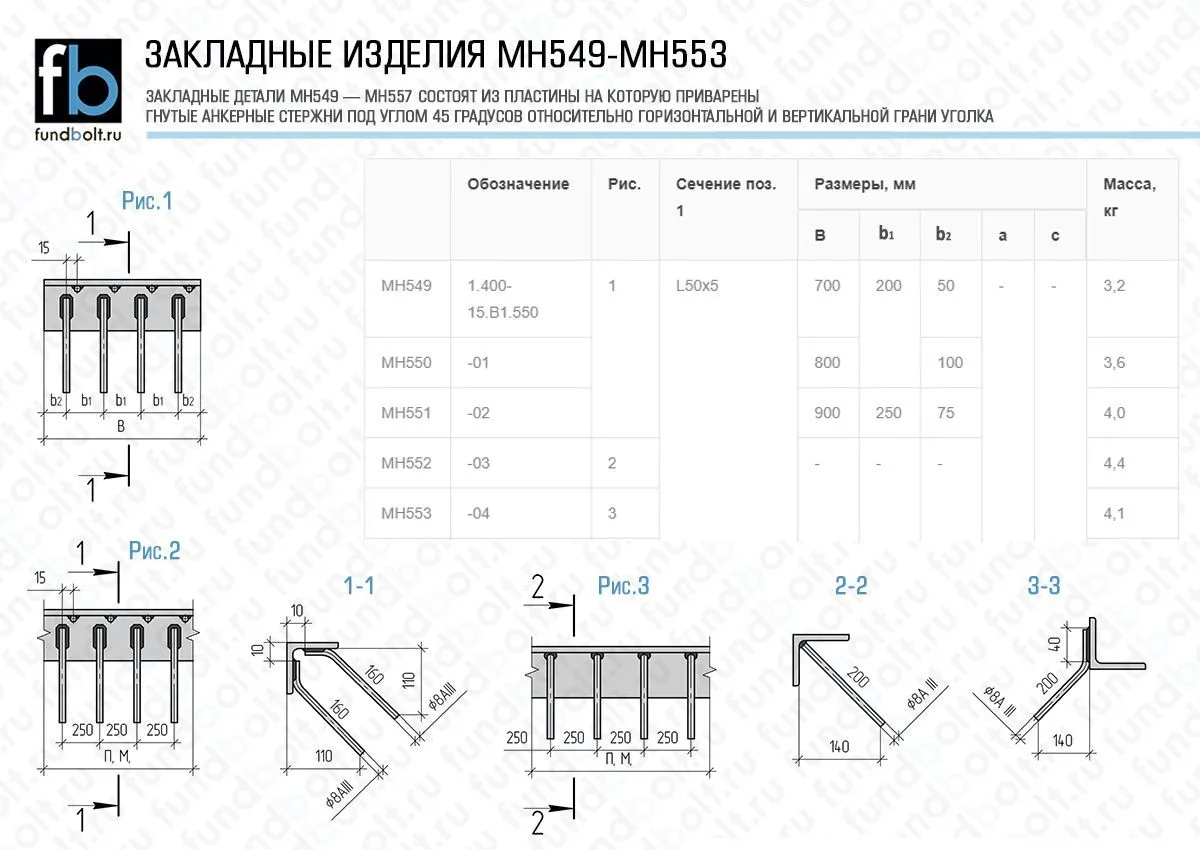 Закладное изделие МН 552 Серия 1.400-15 выпуск 1, Длина 400