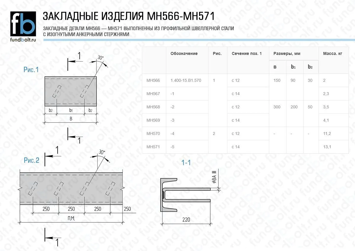 Закладное изделие МН 571 Серия 1.400-15 выпуск 1, Длина 2200