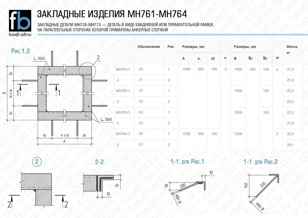 Каталог Закладные детали по сериям Закладное изделие МН 761-2 Серия 1.400-15 выпуск 1